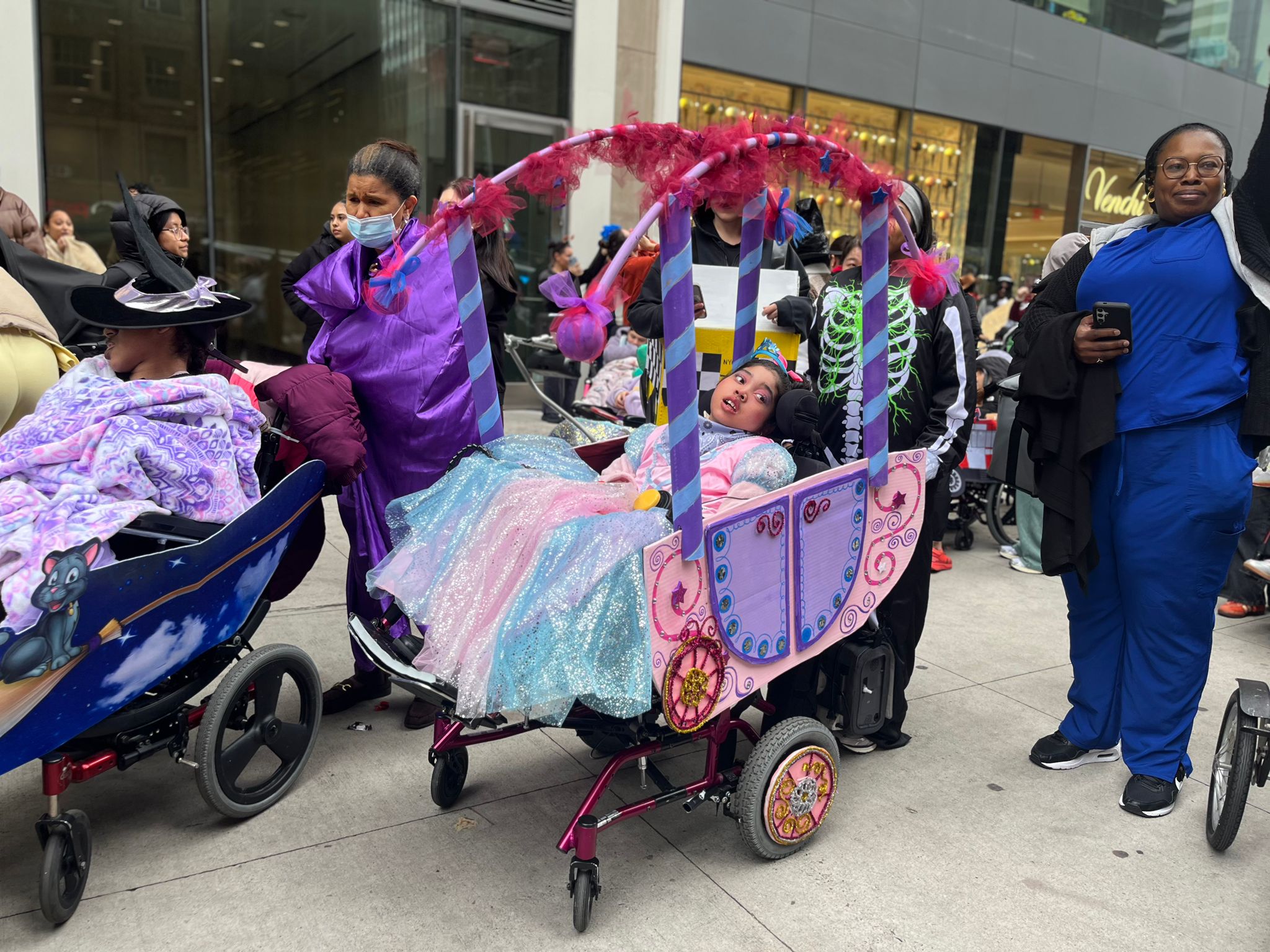 Nicole, a student at iHOPE Academy in New York City, which educates students with disabilities, goes trick-or-treating last week in a specially designed costume that turned her wheelchair into a princess’ carriage.