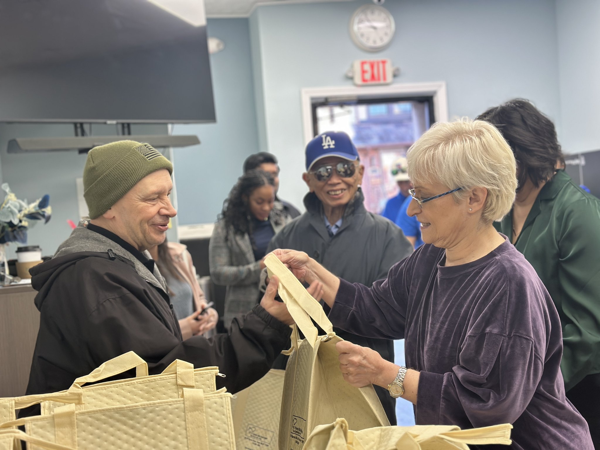 New York City Council Member Lynn Schulman hands out kosher turkeys yesterday to food-insecure residents of Queens’ Forest Hills neighborhood during an event with the Jewish anti-poverty group Met Council. The turkeys were among thousands that Met Council has provided to New Yorkers this year through a donation from the Sol Goldman Charitable Trust by its trustee, Jane Goldman.