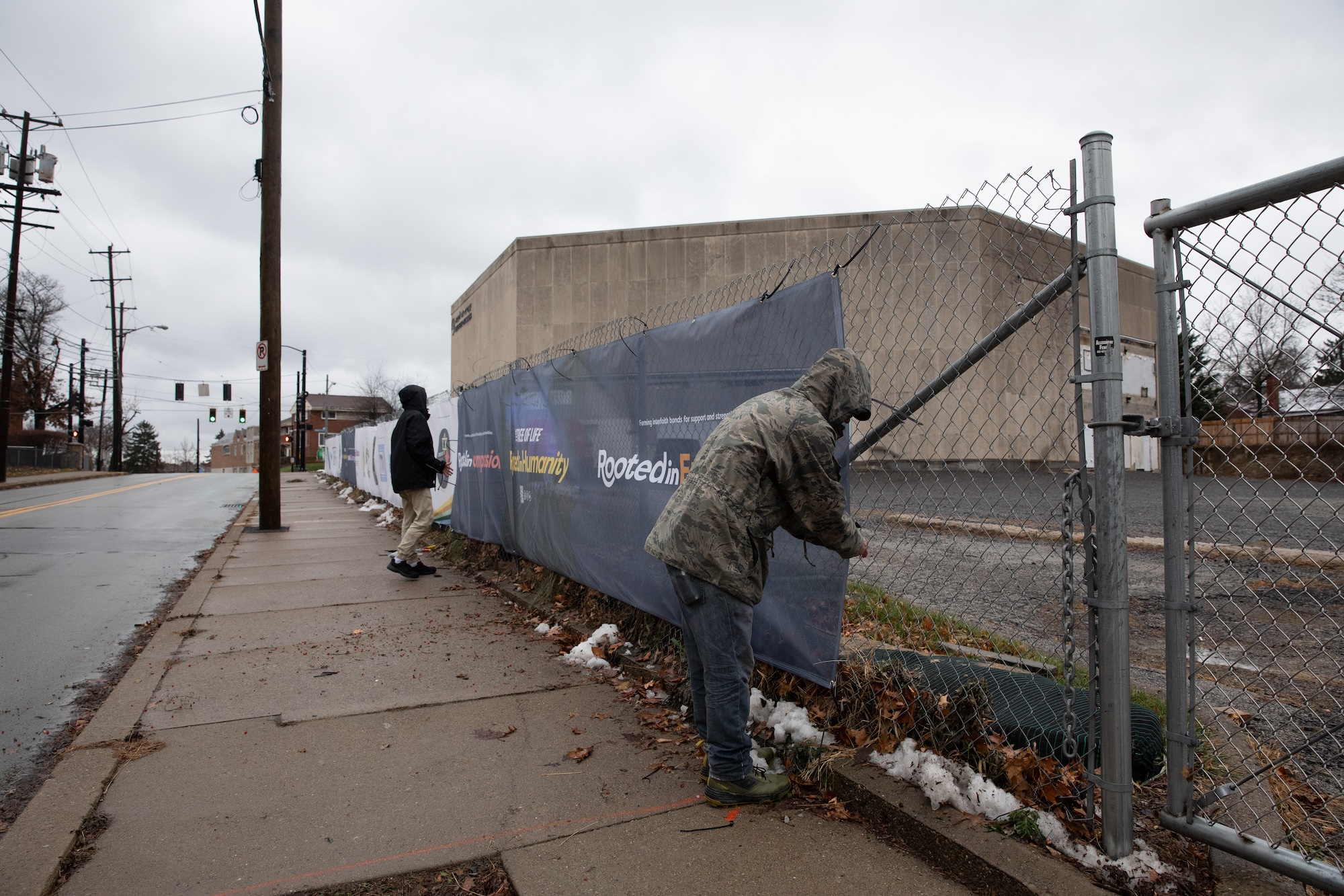 The Tree of Life, the foundation created to memorialize the deadly 2018 shooting at the Tree of Life congregation in Pittsburgh, installs a new banner around the synagogue’s fence to mark the start of a new campaign to combat antisemitism, dubbed “Rooted in Humanity,” which focuses on commonality and connection.