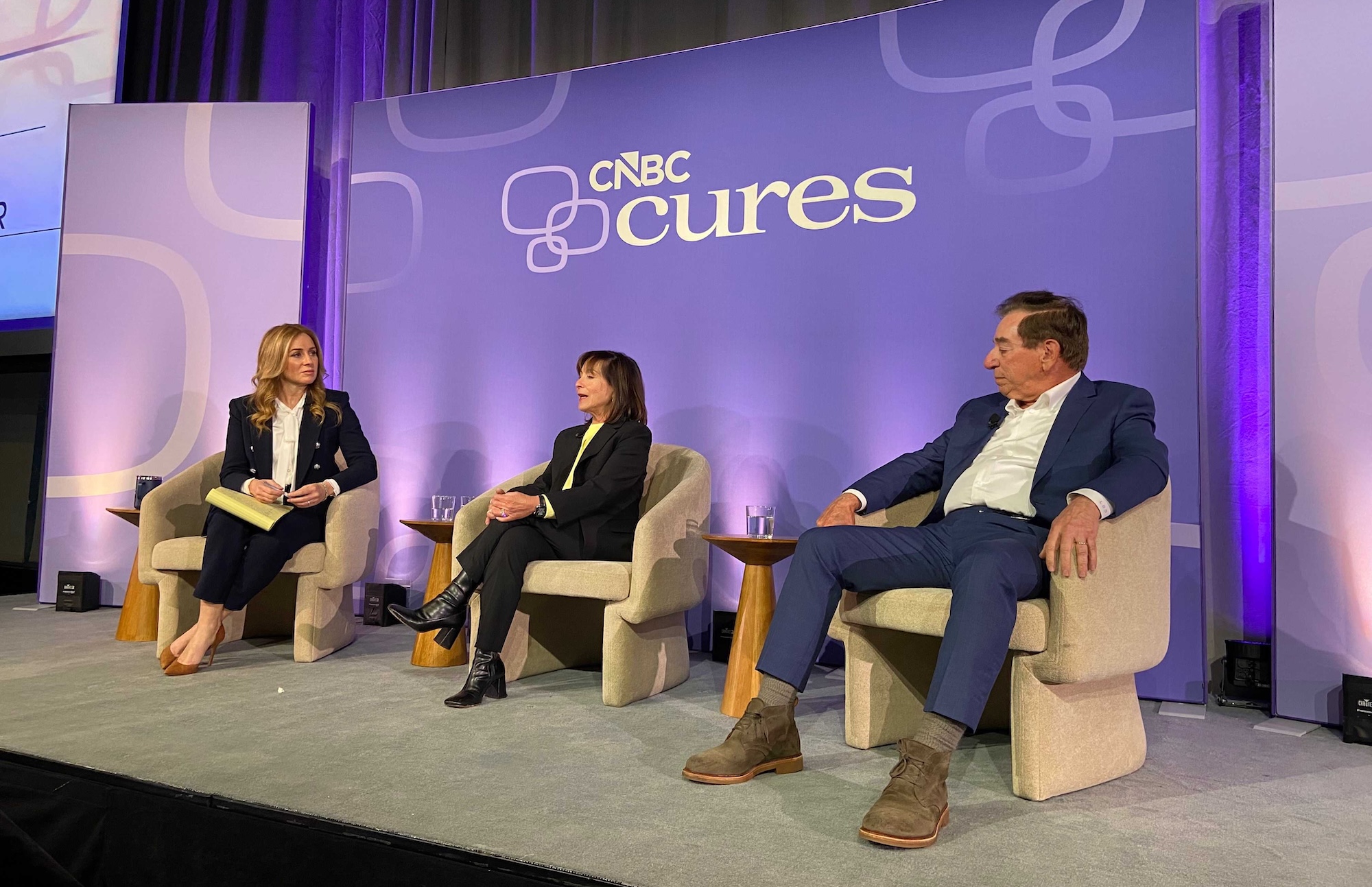 Harriet and Leonard Schleifer speak onstage on Tuesday with CNBC’s Becky Quick (left) at the news channel’s Cures Summit in New York City. The Schleifers discussed their efforts to help their 38-year-old son, David, who suffered from an array of disorders for most of his life that were only recently diagnosed as stemming from a rare genetic mutation that disproportionately affects Ashkenazi Jews, Transketolase deficiency.